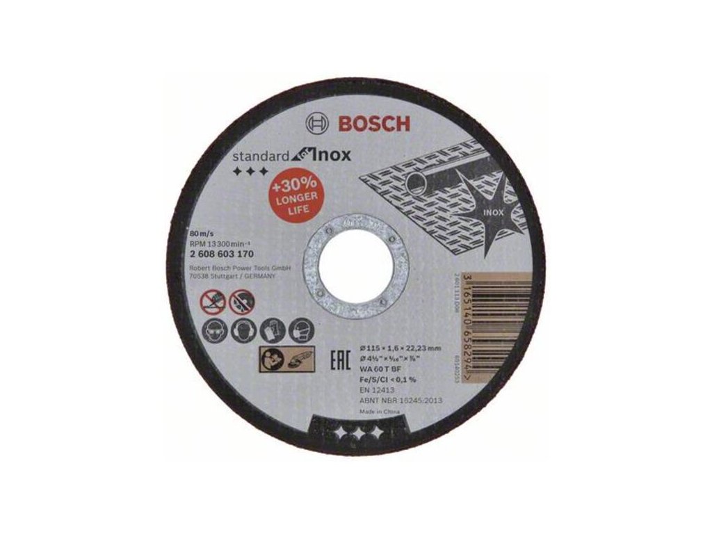 rezný kotúč rovný Standard for INOX WA 60 T BF, 115 x 22,23 x 1,6 mm - Bosch