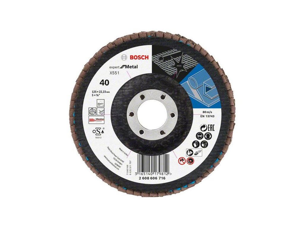 Bosch Lamelový brúsny kotúč X551 Expert for Metal 125 mm, K40 prelis 2608606716