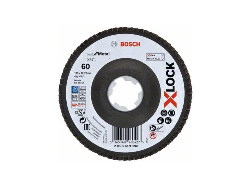 Bosch Lamelový brúsny kotúč X571 X-Lock Best for Metal, 115 mm, K60, prelis 2608619198