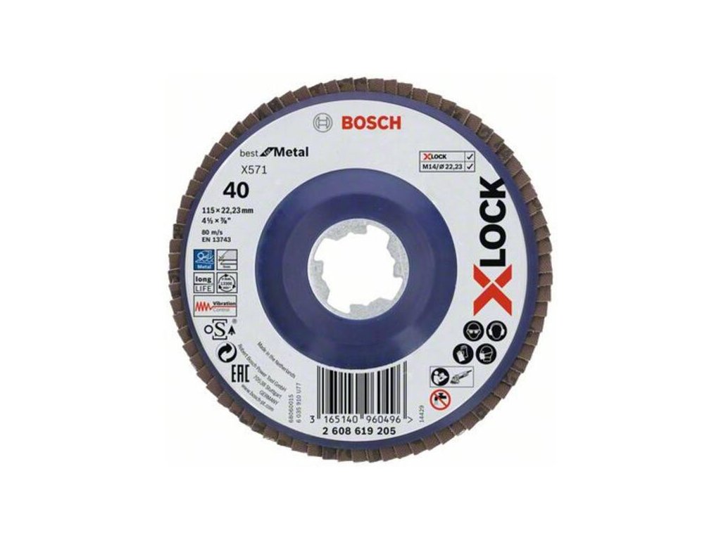 Bosch Lamelový brúsny kotúč X571 X-Lock Best for Metal, 115 mm,K40, priamy 2608619205