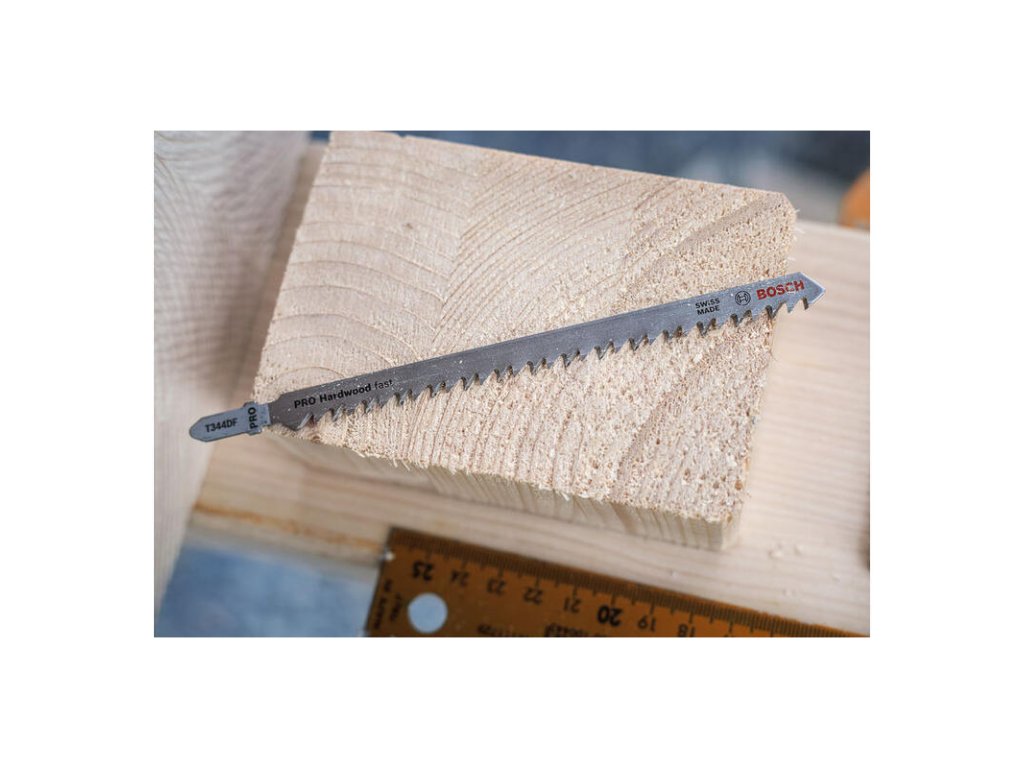 Dlhá životnosť pri rezaní tvrdého dreva! Kratšie listy priamočiarej píly si neporadia s obrobkami z tvrdého masívneho dreva do hrúbky 100 mm. Preto sme vyrobili PRO Hardwood fast T344DF. Pílový list je dlhý 152 mm, vďaka čomu ho môžete použiť na rýchle a rovné rezy do hrubšieho tvrdého dreva. Bimetalový (BIM) list do priamočiarej píly PRO Hardwood fast T344DF má pás zubov z rýchloreznej ocele (HSS), ktorý je spojený s telom z ocele s vysokým podielom uhlíka (HCS). To zaisťuje ľahké rezanie do tvrdého masívneho dreva v priebehu dlhého obdobia. List do priamočiarej píly má ostré rozvedené zuby, ktoré umožňujú rýchle rezy.