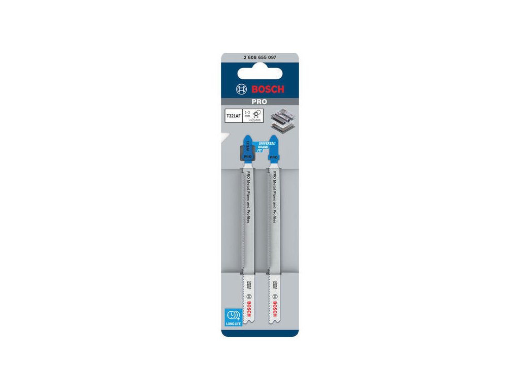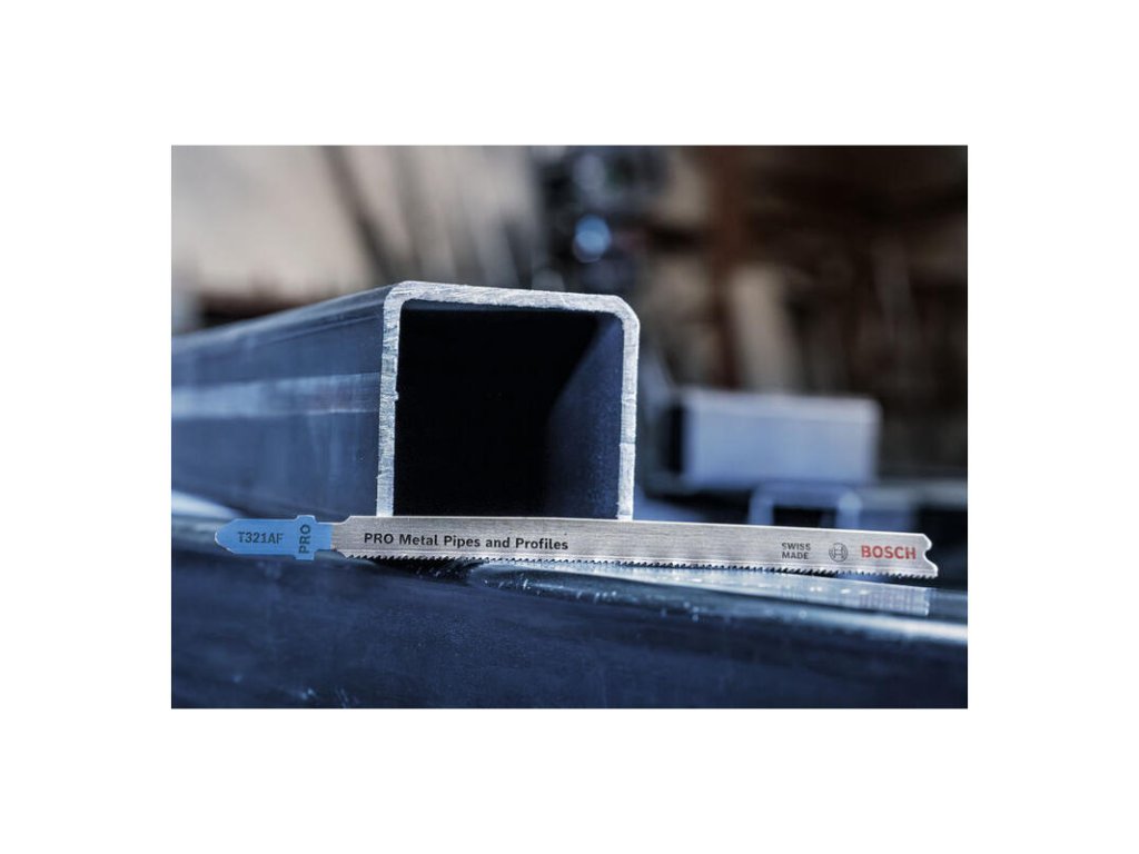 Rezanie kovových rúr a profilov s dlhou životnosťou! Ak chcete použiť priamočiaru pílu na rezanie kovových rúr a profilov, potrebujete pílový list, ktorý je tvrdý, pružný a dostatočne dlhý na to, aby si efektívne poradil s týmto typom kovových prvkov. Takým pílovým listom je PRO Metal Pipes and Profiles T321AF s dlhou životnosťou, ktorý sme vyrobili pre tento druh práce. List do priamočiarej píly PRO Metal Pipes and Profiles T321AF je vyrobený z kombinácie dvoch kovov: má pás zubov z rýchloreznej ocele (HSS), ktorý je spojený s telom z ocele s vysokým obsahom uhlíka (HCS). To znamená, že je odolný a dostatočne tvrdý na to, aby ste s ním mohli rezať kovové rúry a profily so stenami s hrúbkou až 3 mm. Zúžené telo pílového listu, tenký zárez a silné frézované, vlnovité zuby zaisťujú hladký priebeh rezu. S predĺženým pílovým listom môžete rezať rúry a profily s priemerom až 65 mm.
