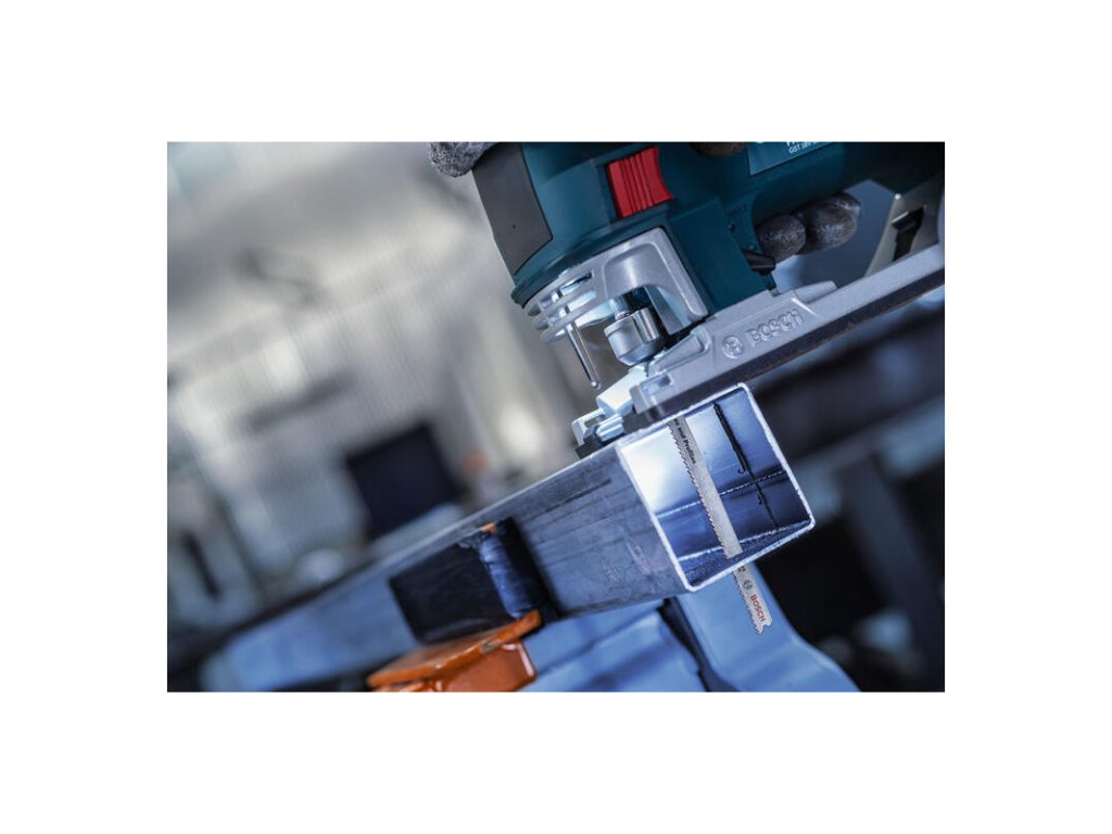 Rezanie kovových rúr a profilov s dlhou životnosťou! Ak chcete použiť priamočiaru pílu na rezanie kovových rúr a profilov, potrebujete pílový list, ktorý je tvrdý, pružný a dostatočne dlhý na to, aby si efektívne poradil s týmto typom kovových prvkov. Takým pílovým listom je PRO Metal Pipes and Profiles T321BF s dlhou životnosťou, ktorý sme vyrobili pre tento druh práce. List do priamočiarej píly PRO Metal Pipes and Profiles T321BF je vyrobený z kombinácie dvoch kovov: má pás zubov z rýchloreznej ocele (HSS), ktorý je spojený s telom z ocele s vysokým obsahom uhlíka (HCS). To znamená, že je odolný a dostatočne tvrdý na to, aby ste s ním mohli rezať kovové rúry a profily so stenami s hrúbkou až 6 mm. Zúžené telo pílového listu, tenký zárez a silné frézované, vlnovité zuby zaisťujú hladký priebeh rezu. S predĺženým pílovým listom môžete rezať rúry a profily s priemerom až 65 mm.