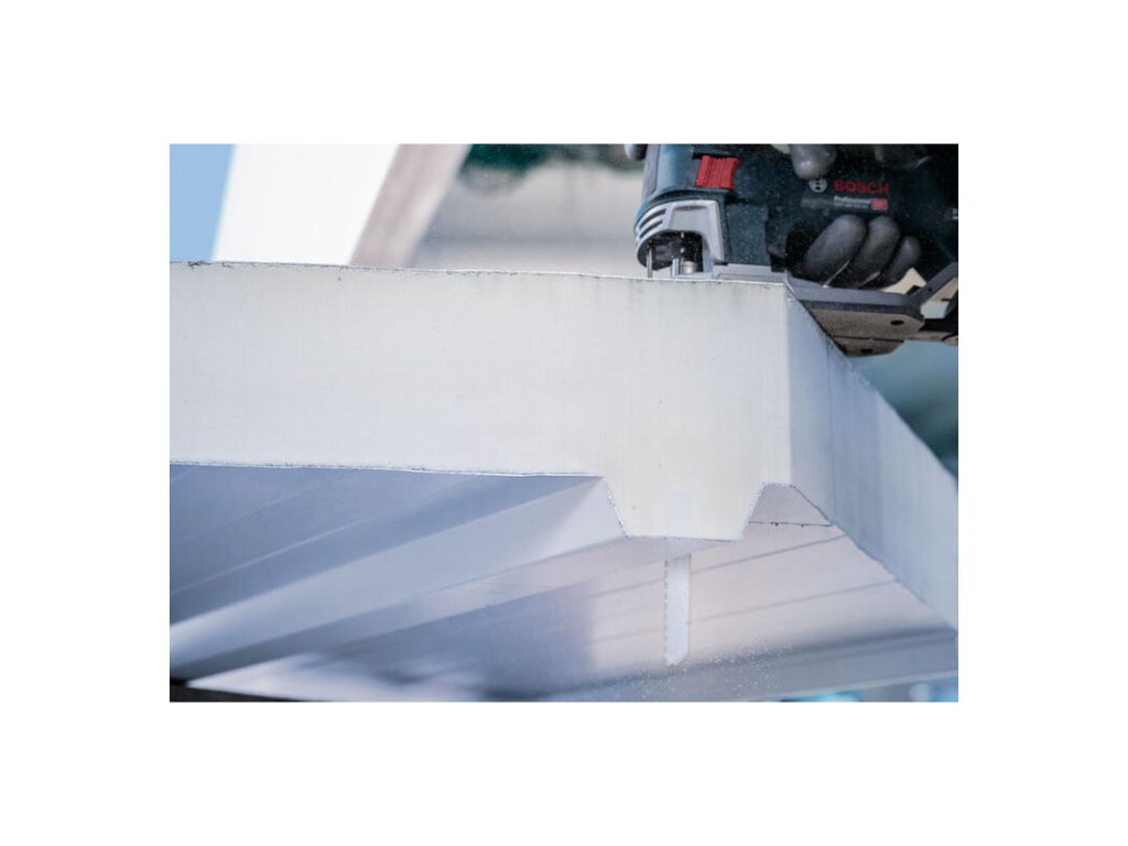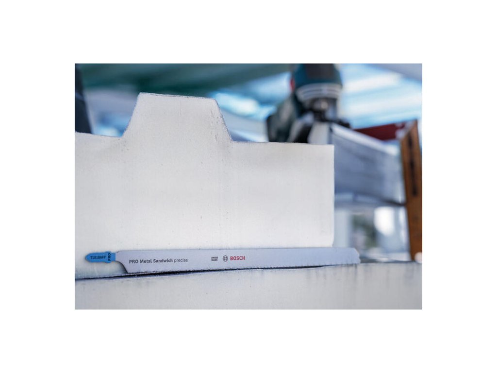 Rezanie tvrdých vrstvených kovových materiálov s dlhou životnosťou! Na dosiahnutie presných a čistých rezov v kovovom vrstvenom materiáli je potrebný list do priamočiarej píly, ktorý je pevný, ale aj hrubý a dostatočne dlhý na rezanie tvrdého, viacvrstvového materiálu. Presne s týmito vlastnosťami sme navrhli pílový list PRO Metal Sandwich precise T1018AFP. Vďaka bimetalovému materiálu a väčšej hrúbke vám tento list priamočiarej píly s dĺžkou 250 mm opakovane pomôže dokončiť túto prácu. List do priamočiarej píly PRO Metal Sandwich precise T1018AFP vďačí za svoju pevnosť a pružnosť svojmu bimetalovému materiálu: má pás zubov z rýchloreznej ocele (HSS), ktorý je spojený s pružnejším telom z ocele s vysokým obsahom uhlíka (HCS). Tento pílový list sme vyrobili s väčšou hrúbkou: ťažko sa ohýba a poskytuje presné rovné rezy pod uhlom, ktorý potrebujete. Je vyfrézovaný, zvlnený a zuby s jemným rozstupom vám pomôžu jednoducho a úhľadne rezať kovové sendvičové panely. Predĺžený pílový list umožňuje opracovanie obrobkov s hrúbkou až 150 mm. Odporúčame používať tento pílový list s priamočiarymi pílami Bosch GST 150 a 160.