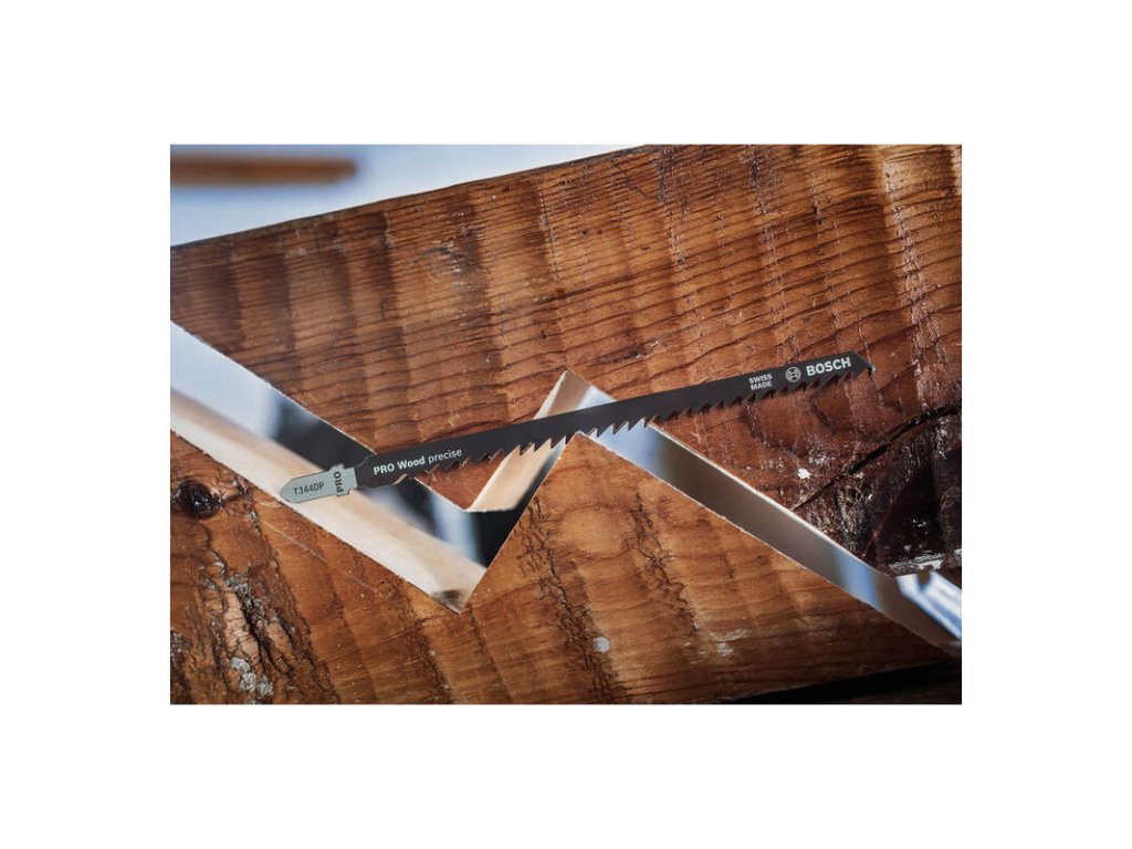Presné rezanie mäkkého dreva! Ak chcete urobiť rýchle rovné rezy v hrubších obrobkoch z mäkkého dreva, potrebujete pílový list s vysokou uhlovou presnosťou. Pílový list musí byť hrubší a dlhší a musí mať silné ostré zuby. List do priamočiarej píly PRO Wood precise T344DP má všetko, čo na túto prácu potrebujete. List do priamočiarej píly PRO Wood precise T344DP je vyrobený z ocele s vysokým obsahom uhlíka (HCS), vďaka čomu si ľahko poradíte s mäkkým drevom a neabrazívnymi drevenými materiálmi. Pílový list sa ťažko ohýba a má rozvedené obrúsené zuby, ktoré zaisťujú priame a rýchle rezy pod uhlom, ktorý potrebujete. Je dlhý 152 mm, čo znamená, že ho môžete použiť na rezanie obrobkov s hrúbkou až 100 mm.