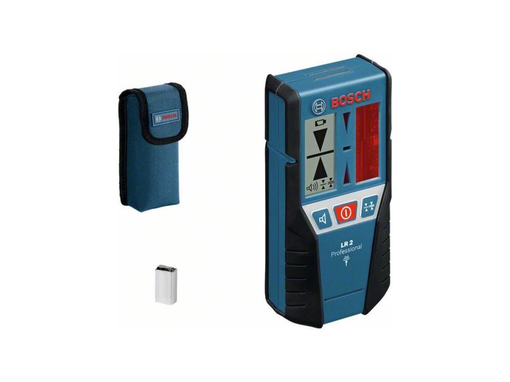 Vysokovýkonný prijímač LR 2, Väčší úžitok vďaka príslušenstvu, Praktický prijímač pre dosah do 50 m, Jednoduchá montáž na meraciu latu, Vyrovnávanie úrovne s laserovým lúčom, opticky (na displeji a pomocou LED-diód) a akusticky, na prácu pri rôznych svetelných podmienkach, 1× batéria 9 V (blok) (6LR61)