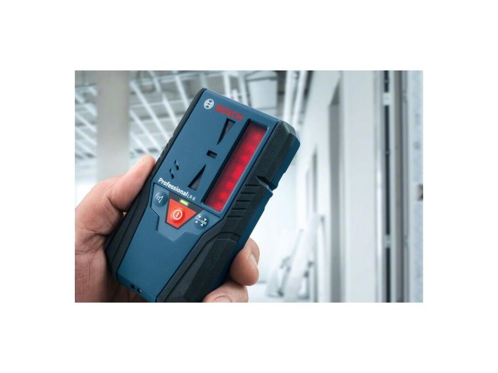Laserový prijímač LR 6, Laserový prijímač s jednoduchým ovládaním a kompaktným dizajnom, Praktický prijímač pre dosah do 50 m, Vyrovnávanie úrovne s laserovým lúčom, opticky a akusticky, pre prácu pri rôznych svetelných podmienkach, 2× batéria 1,5 V LR03 (AAA)