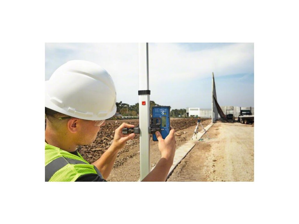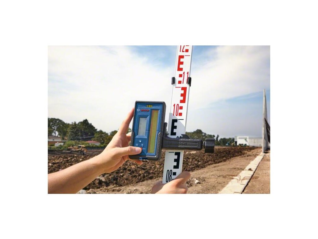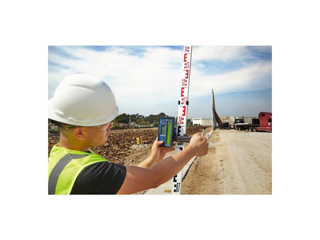 Laserový prijímač LR 45, Robustný laserový prijímač LR 45 Professional umožňuje jednoduchú detekciu zelených a červených laserových lúčov. Dlhá prijímacia plocha prístroja a obojstranný podsvietený displej s funkciou kompenzácie v mm zaručuje bezproblémovú detekciu lasera. Vždy pripravený na práce na náročných staveniskách: vďaka ergonomickej mäkkej uchopovacej ploche a ochrane IP 66 pred prachom a vodou je ideálnym prístrojom do náročných podmienok. Šesť stupňov nastavenia citlivosti a tri stupne hlasitosti (vrátane možnosti vypnutia) ponúka flexibilitu na jednoduché prispôsobenie na akomkoľvek stavenisku. Prístroj LR 45 Professional je vhodný na použitie v interiéri a exteriéri a je ideálnym pomocníkom pri výkopových prácach, terénnych úpravách, fasádnych prácach, liatí betónu, inštaláciách HVAC (kúrenie, vetranie, klimatizácia) a mnohých ďalších. LR 45 Professional ponúka dlhý pracovný dosah až 300 m. Integrovaná vodováha ešte viac zjednodušuje nivelizáciu.