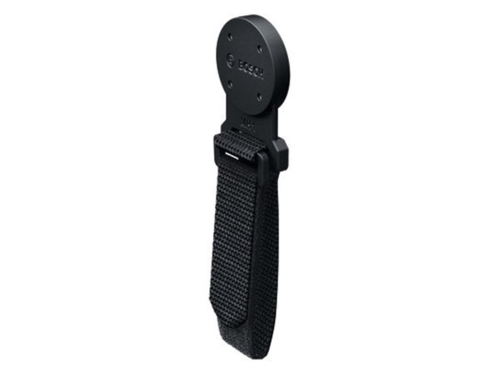Silný magnet udrží prístroj spoľahlivo na mieste, zatiaľ čo pogumovaný povrch zabraňuje poškriabaniu podkladu a zaisťuje elektrickú izoláciu. Uchytenie k prístroju je riešené pomocou flexibilného popruhu so suchým zipsom, čo zaručuje univerzálnu kompatibilitu s rôznymi modelmi Bosch.