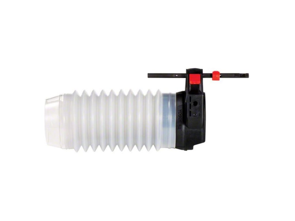 Systémové príslušenstvo Nadstavec na odsávanie prachu, Jednoducho nasúvateľný kryt na zachytávanie prachu, na vŕtanie bez prachu, Veľká efektivita pri vertikálnych a horizontálnych vŕtaných otvoroch, Jednoduchá manipulácia na pripojenie prostredníctvom hĺbkového dorazu vŕtacieho kladiva Bosch, Kompatibilné s 2 – 4 kg a 18 V alebo 36 V vŕtacími kladivami Bosch SDS plus