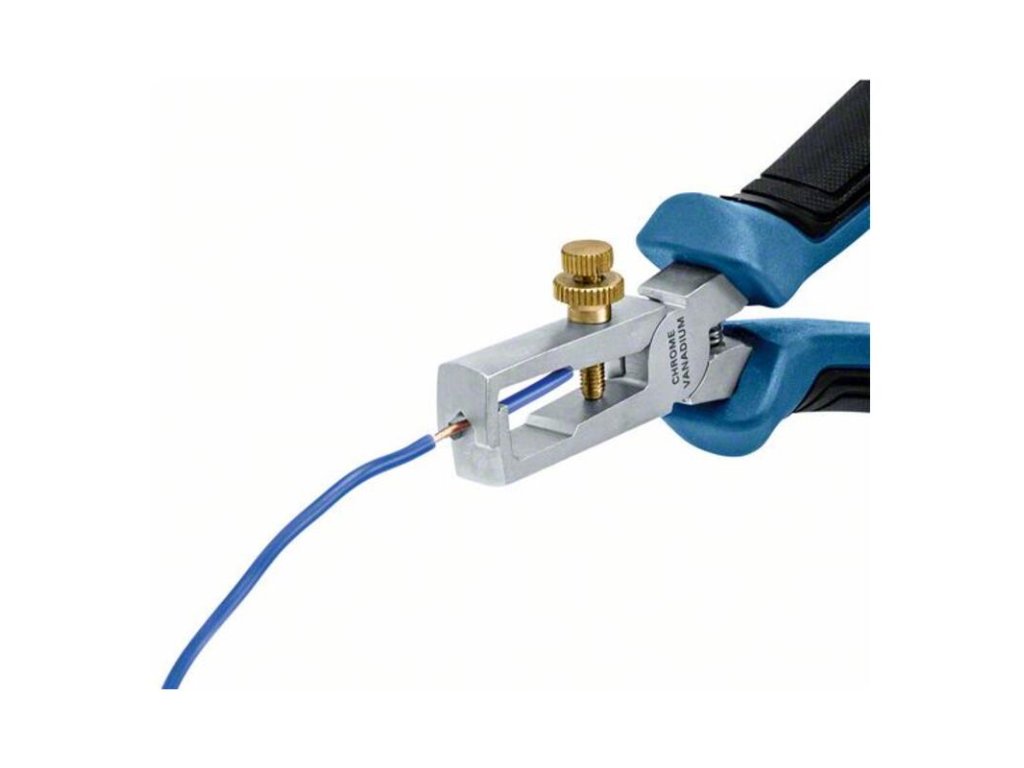 Kliešte Odblankovacie kliešte, 160 mm, Odizolovač drôtov Bosch Professional 160 mm s nastavovacou skrutkou a pružinovými stopkami sa dá presne nastaviť na odizolovanie káblov do 10 mm2. Robustné stopky z chróm-vanádiovej ocele sú ideálne na opakované odizolovanie a majú dlhú životnosť. Vďaka ergonomicky tvarovaným, mäkkým rukovätiam s protišmykovými ramenami a otváracej pružine sa odstraňovač izolácie káblov pohodlne a bezpečne používa, najmä jednou rukou.