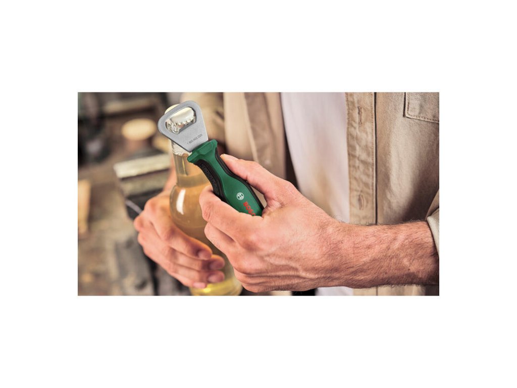 Ručné náradie Otvárač na fľaše; Odolný otvárač na fľaše Bosch do prevádzok, dielní a kuchýň; Komfortné uchopenie a používanie vďaka ergonomickej rukoväti; Odolný, hrubý kovový plátok otvárača; Mäkká dvojkomponentová rukoväť na ľahké otváranie vrchnákov fliaš; Špičkový otvárač vrchnákov na fľaše na každú príležitosť; V škatuli