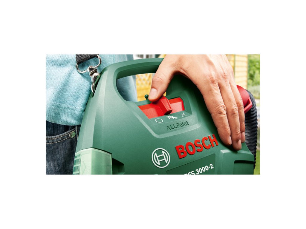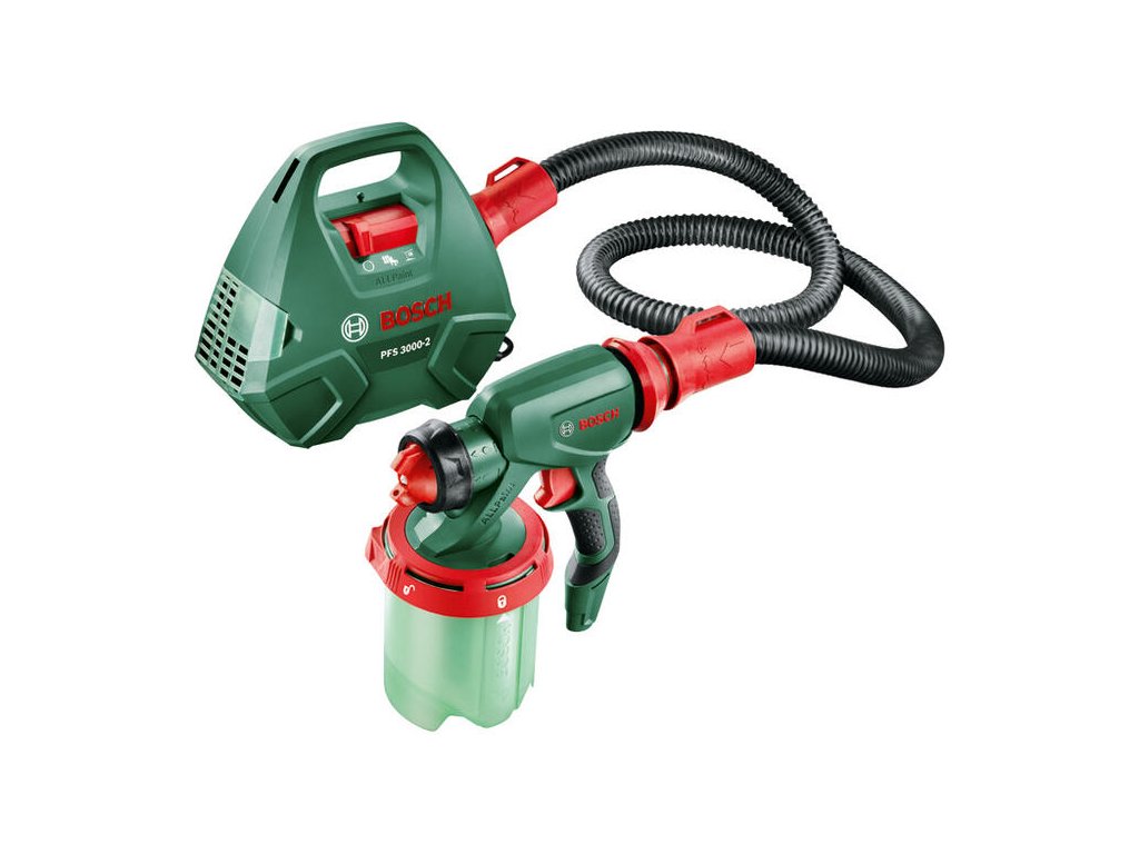 Systém na rozprašovanie farby PFS 3000-2; Zbohom štetky – rýchle a rovnomerné nanášanie na textúrované povrchy a rohy; 650 W motor veľmi zjednodušuje a urýchľuje maľovanie; Rýchlo nanáša farbu s rýchlosťou 2 m²/min, je vhodný na stredné až veľké práce v interiéroch a exteriéroch; Veľký 1 000 ml zásobník farby šetrí drahocenný čas minimalizáciou dopĺňania počas práce; Striekací systém ALLPaint: nanášanie farby na drevo, glazúru alebo lak na drevo alebo kov; Farba je jemne atomizovaná pre rovnomerné nanášanie na všetky povrchy bez kvapkania; Dýzy na lakové farby a lazúry (sivá); Dýzy na farbu na steny (biela); Filter na farbu; Čistiaca kefa; Popruh; 1 000 ml nádobka na farbu s krytom (1.600.A00.1GG); V škatuli