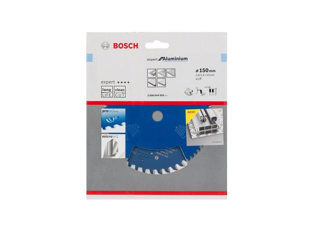 Pílový kotúč Expert for Aluminium robí dokonalé rezy v hliníku. Jedinečné, mimoriadne tvrdé zuby MicroteQ, ktoré vyrába priamo firma Bosch z veľmi jemných karbidových zŕn, zvyšujú životnosť a výkon kotúča na maximum. Tento výkon podporuje aj ochranný povlak kotúča ProteQtion, ktorý bráni korózii a umožňuje spoľahlivé rezanie pri zníženom trení. Navyše má tento produkt protivibračné drážky pre zvlášť hladké rezanie, podstatne nižšiu hlučnosť a zásadne obmedzenie vibrácií. Tento pílový kotúč používajte na rezanie hliníka, neželezných kovov, plastov, epoxidu a dreva. Pílový kotúč Expert for Aluminium má zuby HLTCG (High-Low Triple Chip Ground), ktoré mu dávajú pevnosť na rezanie hliníka.