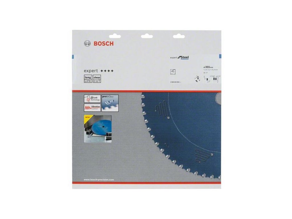 Pílový kotúč Expert for Steel ponúka mimoriadnu nárazuvzdornosť v oceli. Jeho jedinečné, mimoriadne tvrdé zuby MicroteQ vyrába priamo firma Bosch z veľmi odolných karbidových zŕn, čo umožňuje vysoký výkon. Tento výkon podporuje aj ochranný povlak kotúča ProteQtion, ktorý bráni korózii a umožňuje spoľahlivé rezanie pri zníženom trení. Navyše má kotúč protivibračné drážky pre zvlášť hladké rezanie, podstatne nižšiu hlučnosť a zásadne obmedzenie vibrácií. Konfigurácia MTCG (Multi-Purpose Triple Chip Grind) zubov pílového kotúča Expert for Steel zaručuje dlhú životnosť.