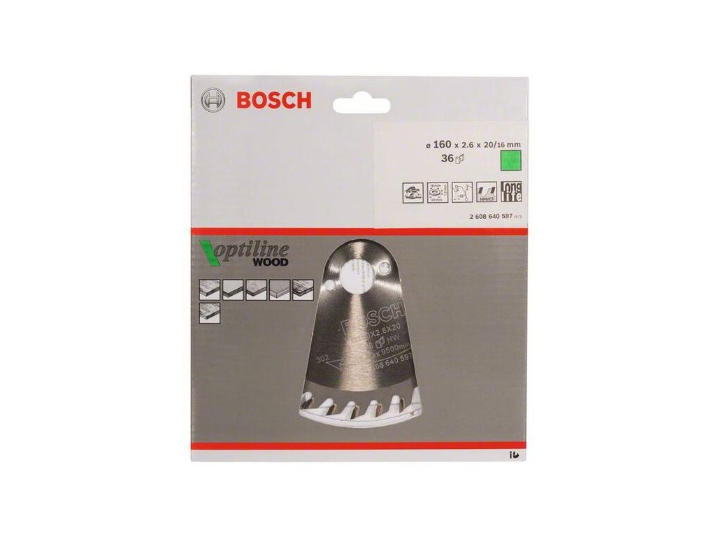 Bosch Pílový kotúč Optiline for Wood 160 20/16 2,6mm Z36 2608640597
