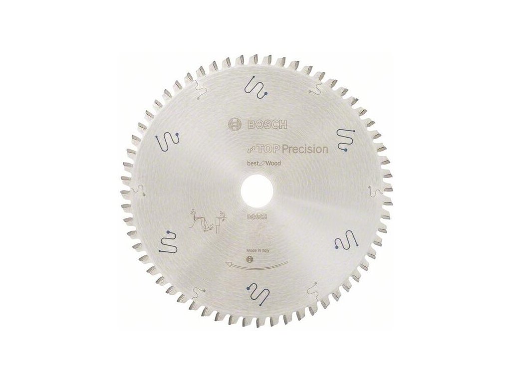 Pílový kotúč Best for Wood poskytuje priemyselnú kvalitu a vykonáva veľmi náročné aplikácie v dreve. Jeho jedinečné, mimoriadne tvrdé zuby MicroteQ vyrába priamo firma Bosch z odolných karbidových zŕn, čo umožňuje vysoký výkon. Na ďalšie posilnenie jeho vysokej kvality má pílový kotúč povlak Cleanteq, ktorý znižuje priľnavosť reziduí, ako je živica a lepidlo, na dosiahnutie mimoriadne čistých výsledkov. Tento povlak navyše udržiava kotúč studený, čím ho chráni pred koróziou. Okrem toho má kotúč špeciálne polyuretánom vyplnené protivibračné drážky Stabilteq, ktoré podstatne znižujú vibrácie a hlučnosť na zvýšenie jednoduchosti a pohodlnosti presného rezania. Tento pílový kotúč je určený na používanie vo všetkých druhoch drevených materiálov. V závislosti od počtu zubov sa so všetkými pílovými kotúčmi Best for Wood, ktoré majú geometriu zubov typu ATB (Alternate Top Bevel), dajú dosiahnuť rozdielne výsledky: Pri veľkom počte zubov robí kotúč čisté rezy, zatiaľ čo nízky počet zubov umožňuje pevné a účinné rezy.