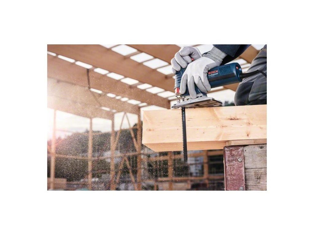 Presné rezanie mäkkého dreva! Ak chcete urobiť rýchle rovné rezy v hrubších obrobkoch z mäkkého dreva, potrebujete pílový list s vysokou uhlovou presnosťou. Takýto pílový list musí byť hrubší a dlhší a musí mať silné ostré zuby. Takýmto pílovým listom je list do priamočiarej píly PRO Wood precise T1044DP, ktorý má všetko, čo potrebujete na dokončenie práce. Pílový list PRO Wood precise T1044DP je vyrobený z ocele s vysokým obsahom uhlíka (HCS), vďaka čomu si ľahko poradíte s mäkkým drevom a neabrazívnymi drevenými materiálmi. Pílový list sa ťažko ohýba a má rozvedené obrúsené zuby, ktoré zaisťujú priame rezy pod uhlom, ktorý potrebujete. Pílový list je dlhý 250 mm, a preto s ním môžete rezať obrobky s hrúbkou až 150 mm. Odporúčame ho používať len s priamočiarymi pílami Bosch GST 150 a GST 160.