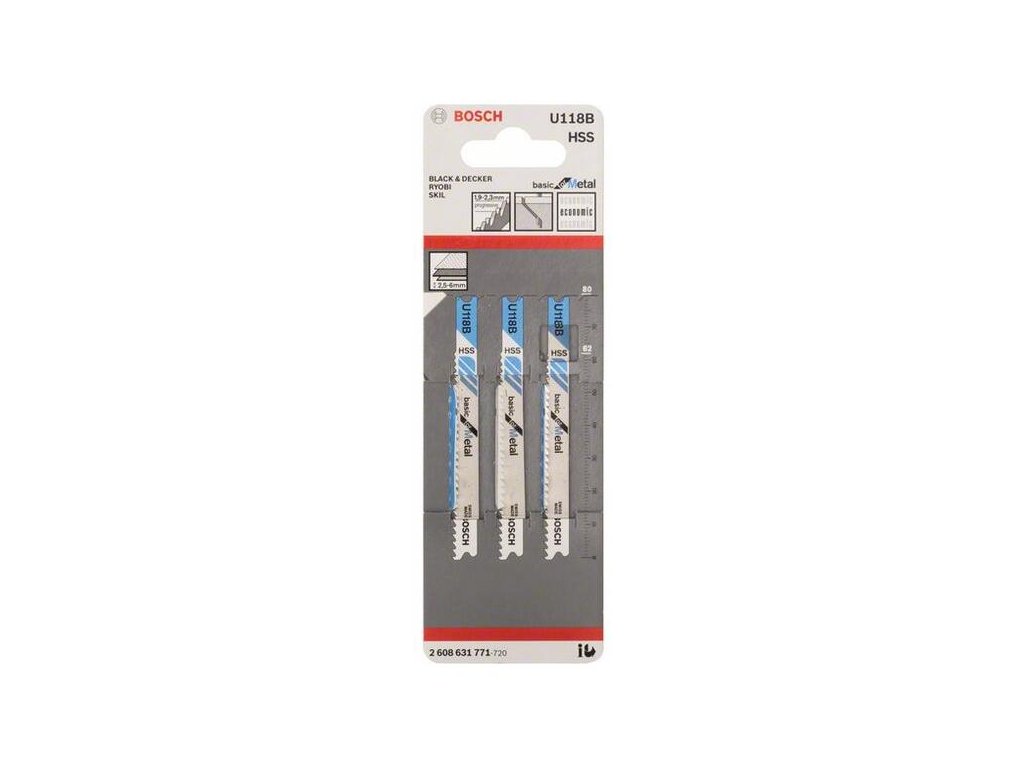 List lupienkovej píly U 118 B Basic for Metal robí rovné rezy v kove. Jeho frézované zuby vlnovitého tvaru sú ideálne pre rezy bez špeciálnych požiadaviek. Úplne kalená kvalitná rýchlorezná oceľ je vhodná na rezanie nedierovaných plechov so štandardnou pevnosťou. Malý rozstup zubov (1,9 – 2,3 mm) listu navyše reže širokú škálu stredne hrubých kovových plechov s hrúbkou 2,5 – 6 mm.