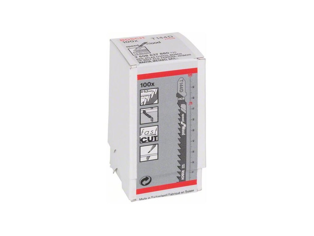 List lupienkovej píly T 144 D Speed for Wood umožňuje rýchle rovné rezy v dreve. Jeho ostré nabrúsené rozvedené zuby umožňujú rýchle rezy. Vysokouhlíková oceľ, z ktorej je list vyrobený, je vhodná na rezanie mäkkého dreva a neabrazívnych obrábaných drevených materiálov. Jeho veľký vzostupný rozstup zubov (4 mm – 5,2 mm) navyše pomáha rezať širokú škálu drevených materiálov s hrúbkou 5 – 50 mm.