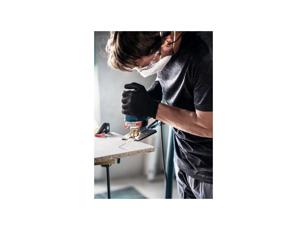 Rezanie laminovaných pracovných dosiek s vysokou presnosťou bez trhania! Zabezpečenie toho, aby bola čistá strana rezu priamočiarou na viditeľnej časti pracovného materiálu, bolo u stolárov a drevárov vždy umením. Niekedy môžete obrobok otočiť, inokedy môžete držať samotnú priamočiaru pílu hore nohami. Alebo môžete použiť pílový list EXPERT Hardwood 2-side clean, ktorý vďaka svojim protiľahlým zubom ponúka na oboch stranách perfektné rezy bez ostrapov. Pílový list priamočiarej píly Bosch EXPERT Hardwood 2-side clean je vyrobený z dvoch kovov – je to pás kovu na rýchle rezanie spojený s pružnou oceľovou čepeľou, takže vzniká silný a flexibilný materiál. Vďaka tomu je dostatočne robustný na rezanie kuchynských pracovných dosiek z laminovanej drevotriesky alebo tvrdého dreva. Je dostupný na priame rezy bez ostrapov (T308BF) a pre obzvlášť presné uhlové rezy bez ostrapov (T308BFP).