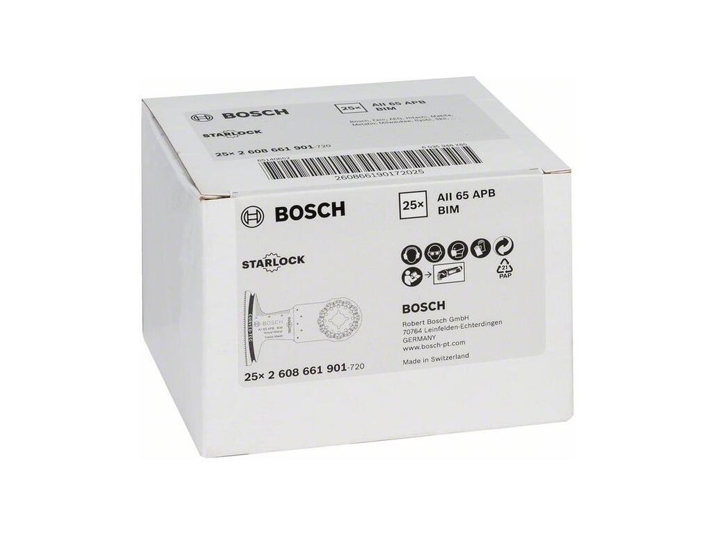 Starlock AII 65 APB poskytuje dlhú životnosť pri širokých rezoch do dreva a nekaleného kovu. Pevná BIM (bimetalová) kombinácia listu z HCS (vysokouhlíkovej ocele) a zubov z HSS (rýchloreznej ocele) zabezpečuje odolnosť voči opotrebeniu a teplu pri práci s tvrdými materiálmi, napr. kovmi, a abrazívnymi materiálmi, čím zabezpečuje dlhú životnosť listu. Plochá konštrukcia listu znižuje kývanie, aby sa zabezpečil riadený rez vďaka priamemu prenosu sily, čo minimalizuje opotrebenie listu. Jeho zaoblená rezná hrana (Curved-Tec) zabraňuje zlomeniu zubov, čím zvyšuje trvanlivosť. Tento list je určený na skracovanie zárubní pri podlahe a ponorné rezanie vo vrstvených paneloch. Reže drevo s nezakaleným kovom, mäkký plast, sadrokartón a drevo s klincami. Upínanie Starlock Snap-In umožňuje vybrať a vymeniť príslušenstvo do 3 sekúnd bez toho, aby ste sa ho museli dotknúť. Vďaka trojrozmernému systému tesného spojenia medzi náradím a príslušenstvom tento upínací systém poskytuje najvyšší prenos sily.