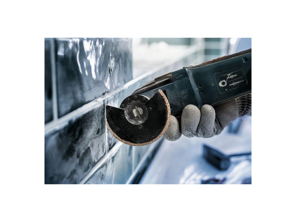 Odstraňovanie škárovacej hmoty s dlhou životnosťou! Viacúčelové náradie je dokonale vhodné na odstraňovanie starej škárovacej hmoty bez poškodenia dlaždíc. PRO ACZ 85 RT3 túto práci to robí efektívne a súčasne ponúka dlhú životnosť. Môžete ho použiť aj na rezanie káblových kanálov do pórobetónu. Pílový list PRO ACZ 85 RT3 Grout Segment Blade využíva tvrdé karbidové zrná, čo mu dodáva odolnosť a účinnosť pri práci s abrazívnymi materiálmi.