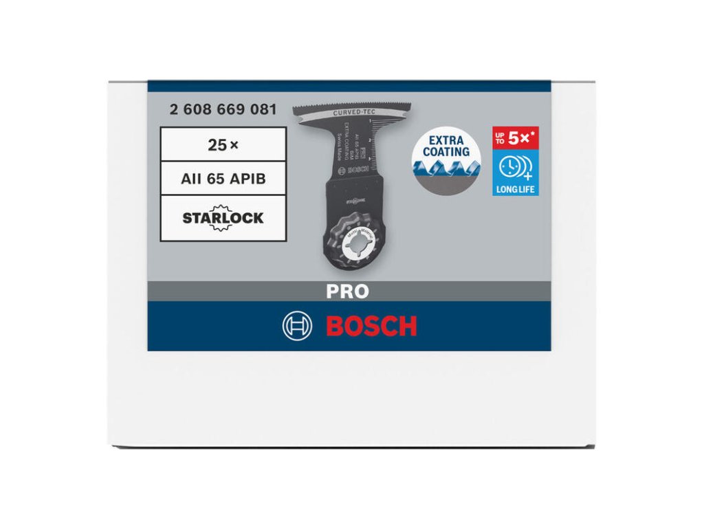 Rezanie dreva, mäkkých kovov a plastov s dlhou životnosťou! Profesionáli, ktorí oceňujú schopnosť viacúčelového náradia vykonávať rezy so zapichnutím, zarovnávacie rezy a presné výrezy, potrebujú aj všestranný pílový list, ktorý vyniká v týchto úlohách: PRO AII 65 APIB má nielen mimoriadne schopnosti pri spracovávaní rôznych materiálov, ale ponúka aj vynikajúcu životnosť. Pílový list PRO AII 65 APIB Plunge Cut Blade je vyrobený z kombinácie dvoch kovov, čo mu dodáva pevnosť a odolnosť. Jeho zuby majú povrchovú úpravu, ktorá im dodáva ešte vyššiu odolnosť. Vďaka vyhotoveniu Curved-Tec je pílový list ideálny na rezy so zanorením bez trhania.