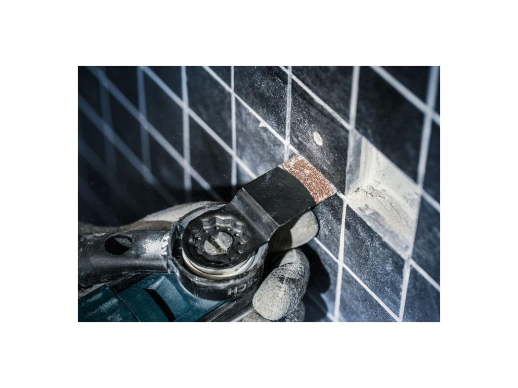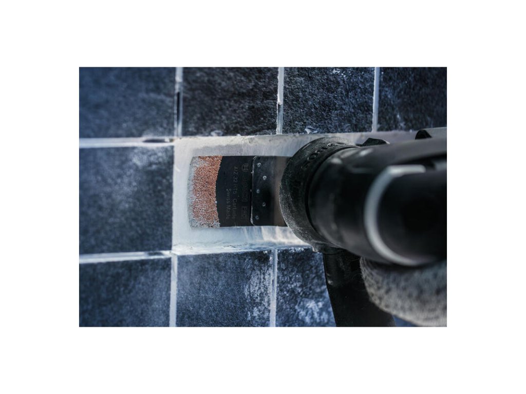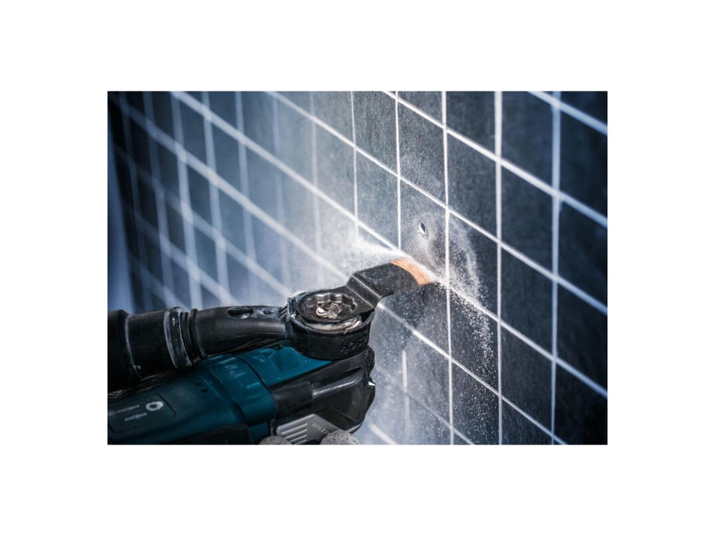 Viac funkcií pri výmene dlaždíc! Pokiaľ ide o odstraňovanie rozbitých dlaždíc, viacúčelové náradie je veľmi efektívne. Profesionáli však v každom prípade potrebovali 2 listy. Vďaka svojmu premyslenému dizajnu vám PRO AIZ 32 RT5 pomôže dostať sa k škárovacej hmote okolo malých dlaždíc a úhľadne obrúsiť starú maltu za nimi. Pílový list PRO AIZ 32 RT5 Plunge Cut Blade využíva dvojitý dizajn na dosiahnutie maximálnej efektívnosti – vykonáva prácu 2 štandardných listov. Okrem toho je vďaka odolným karbidovým zrnám účinný pri práci s abrazívnymi materiálmi.