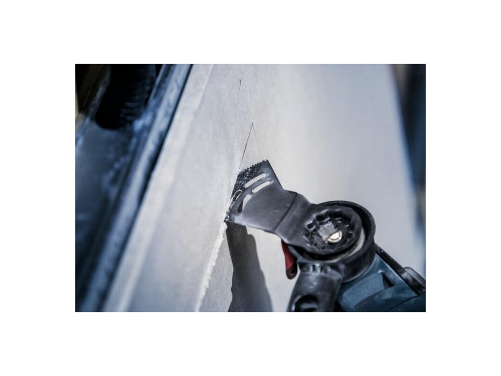 Všestrannosť pri práci! Keď vyrezávate otvory do laminátovej dosky alebo sadrokartónového panelu, zvyčajne potrebujete dva pílové listy pre viacúčelové náradie – jeden na rovné rezy a druhý na úhľadné rezanie v rohoch. Pílový list PRO AYZ 53 BPB plní obe úlohy na vysokej úrovni, pričom efektívne pracuje s abrazívnymi stavebnými materiálmi. Pílový list PRO AYZ 53 BPB Dual-Tec využíva asymetrický dizajn Dual-Tec, vďaka ktorému môže pílový list plniť hneď 2 funkcie: zakrivený pás zubov si poradí s rezmi so zanorením a rovnými rezmi, pravouhlá strana zase zabezpečuje presné rezanie v úzkych rohoch.