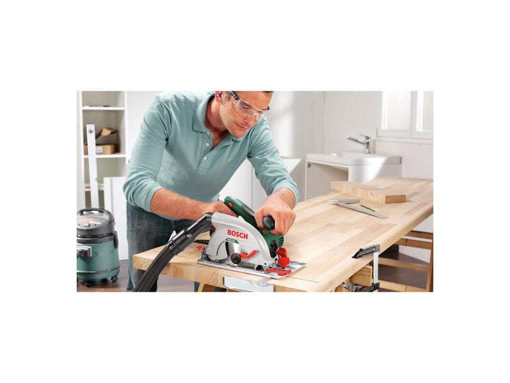 Ručná okružná píla PKS 55; Kompaktná konštrukcia pre lepšiu kontrolu; Ľahké nastavenie hĺbky a uhla rezu; Jednoduchá výmena pílového listu vďaka aretácii vretena; Drážka v podložke sa hodí do systému s vodiacou koľajnicou; Paralelný doraz (2.608.005.018); Adaptér na vysávače; V škatuli