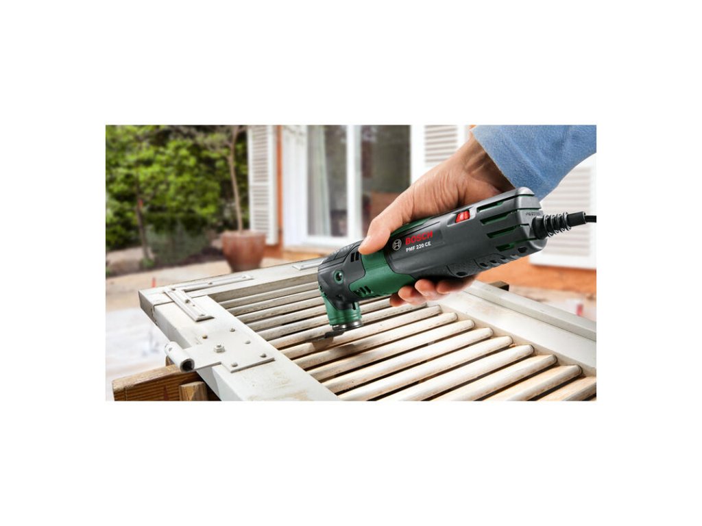 Multifunkčné náradie PMF 220 CE Set; Univerzálne riešenie pre mnoho rôznych druhov svojpomocných prác.; Výkonný 220 W motor s elektronickou predvoľbou otáčok.; Magnetický systém Bosch MagnetHold podporuje výmenu príslušenstva.; Rozsiahle príslušenstvo Starlock pre rôzne aplikácie.; Hĺbkový doraz na presné segmentové pílenie.; Reže, píly, brúsi, oškrabáva, frézuje, rašpľuje a leští rôzne druhy materiálov.; BIM segmentový pílový list Wood and Metall, 85 mm, ACZ 85 EB (2.609.256.943); Brúsna doska v tvare delta 93 mm, AVZ 93 G (2.609.256.956); Súprava brúsnych listov v tvare delta (2.609.256.A54); Odsávanie prachu (2.609.256.D57); HCS flexibilná škrabka, 52 x 45 mm, ATZ 52 SFC (2.609.256.955); Multifunkčný nôž HCS, 24 × 11 mm, ASZ 32 SC (2.609.256.D22); HCS pílový list na rezy so zanorením, na drevo, 32 x 40 mm, AIZ 32 EPC (2.609.256.947); Segmentový pílový list s karbidovými zrnami HM-RIFF, 85 mm, ACZ 85 RT3 (2609 256 952); Kľúč na skrutky s vnútorným šesťhranom; 4-stupňový hĺbkový doraz pre segmentové pílové kotúče (2.609.256.C61); Kufor