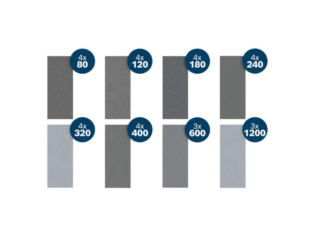 - 4x zrnitosť 80, 120, 180, 240, 320, 400 (z každej 4 ks)