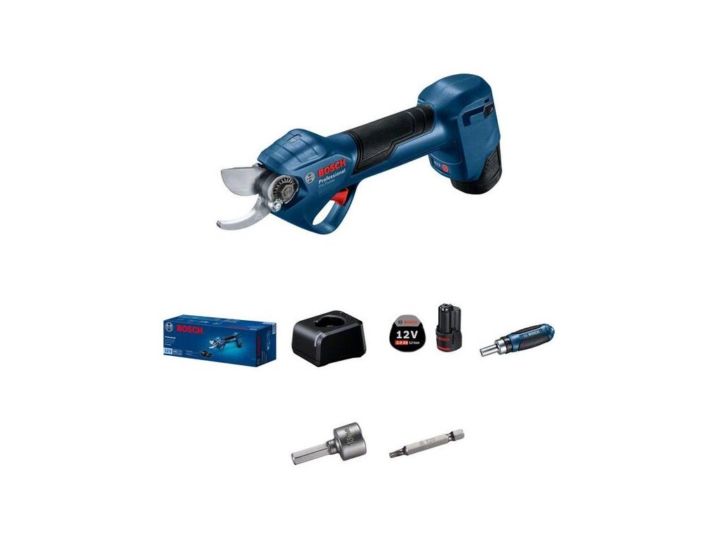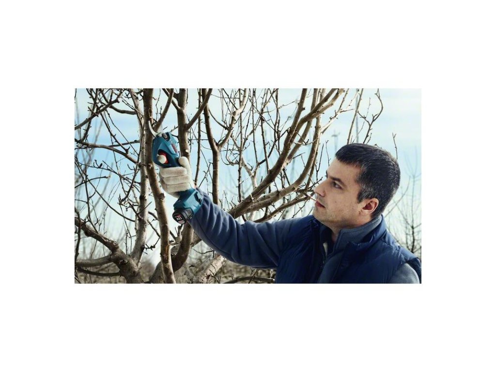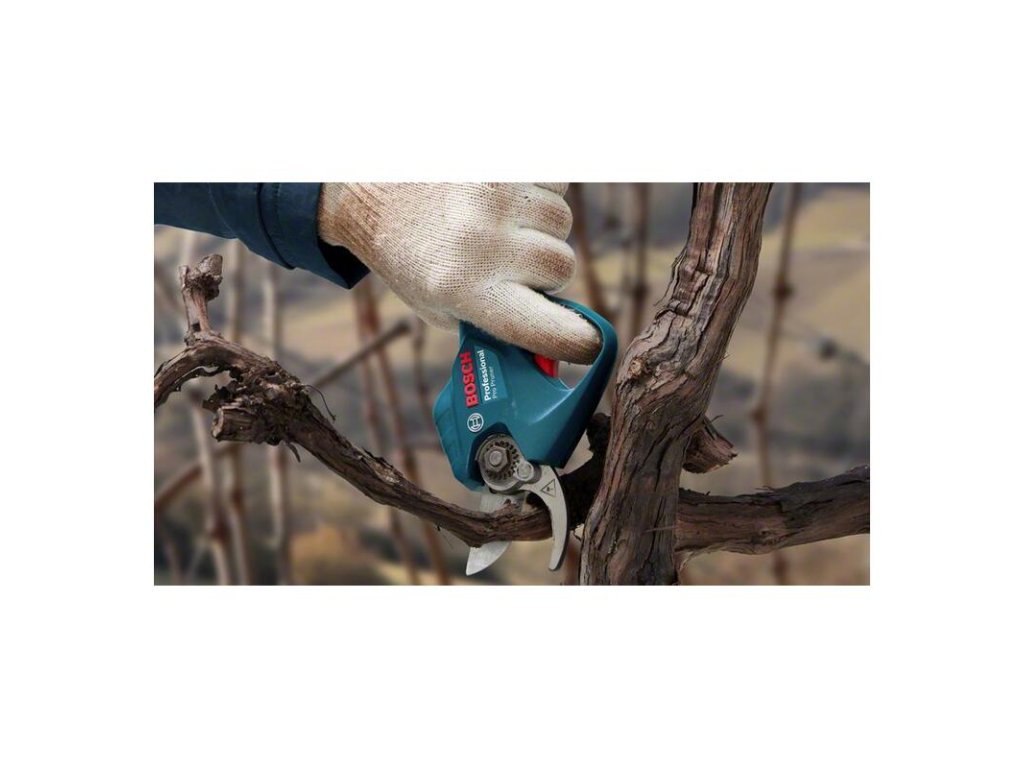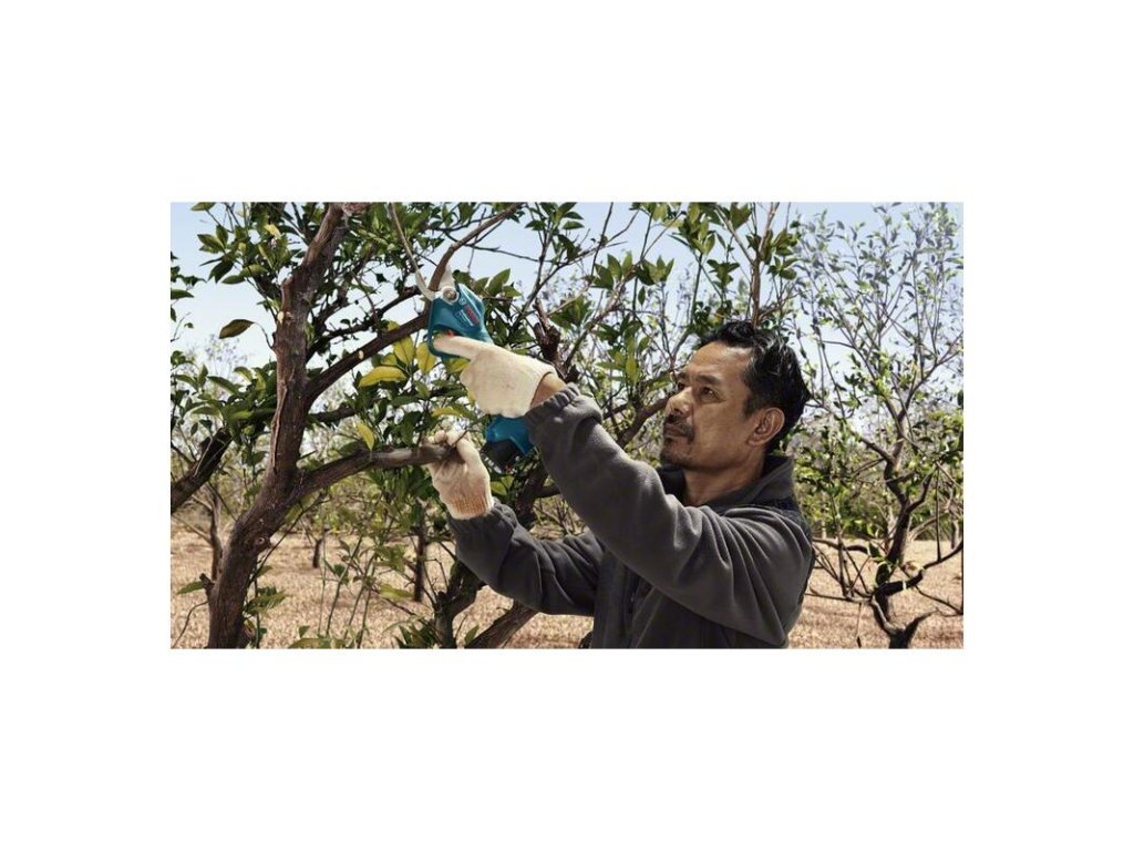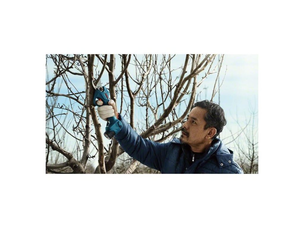 Akumulátorové záhradné nožnice Pro Pruner, Zažite novú dimenziu účinnosti. Tieto akumulátorové nožnice Pro Pruner umožňujú bleskovo ostrihať ovocné stromy na profesionálnej úrovni. Menej námahy a rýchlejšia práca: nožnice Pro Pruner možno v porovnaní s bežnými manuálnymi nožnicami ovládať plynule a s podstatne nižšou námahou, a to vďaka vysokoúčinnému bezuhlíkovému motoru triedy 12 V. Výkonný akumulátor Li-ion v nožniciach zvládne na jedno nabitie až 4 500 rezov, zaručuje dlhú životnosť a dlhotrvajúci výkon. Vďaka vysokoodolným nehrdzavejúcim nožom je takisto zaručená dlhá životnosť náradia viac než 500 000 rezov*. * Údaje podľa testov výskumno-vývojového laboratória Bosch Power Tools Asia Pacific. 2× akumulátor GBA 12V 3.0Ah (1.607.A35.06A); Nabíjačka GAL 12V-20 Professional
