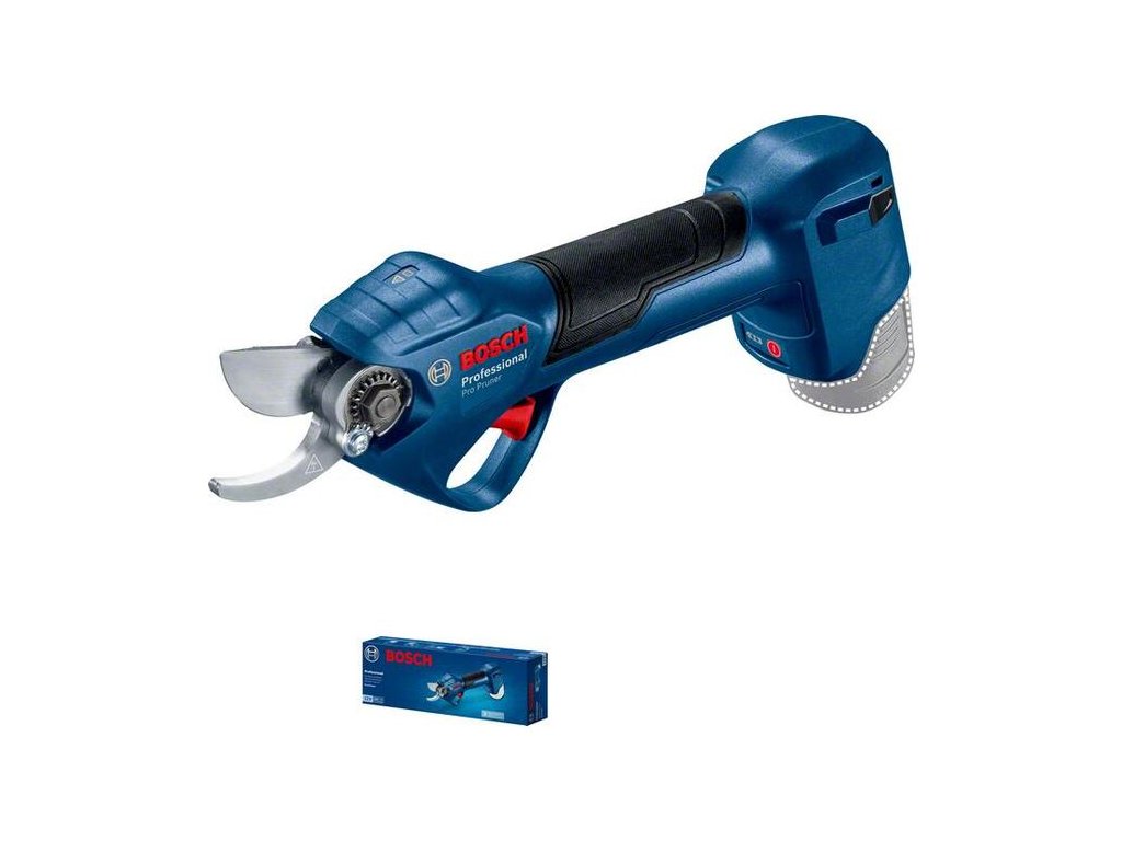 Akumulátorové záhradné nožnice Pro Pruner, Zažite novú dimenziu účinnosti. Tieto akumulátorové nožnice Pro Pruner umožňujú bleskovo ostrihať ovocné stromy na profesionálnej úrovni. Menej námahy a rýchlejšia práca: nožnice Pro Pruner možno v porovnaní s bežnými manuálnymi nožnicami ovládať plynule a s podstatne nižšou námahou, a to vďaka vysokoúčinnému bezuhlíkovému motoru triedy 12 V. Výkonný akumulátor Li-ion v nožniciach zvládne na jedno nabitie až 4 500 rezov, zaručuje dlhú životnosť a dlhotrvajúci výkon. Vďaka vysokoodolným nehrdzavejúcim nožom je takisto zaručená dlhá životnosť náradia viac než 500 000 rezov*. * Údaje podľa testov výskumno-vývojového laboratória Bosch Power Tools Asia Pacific.