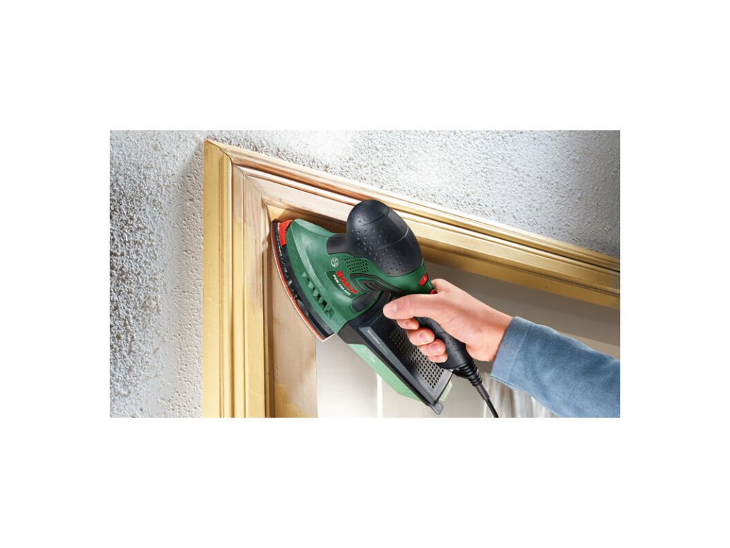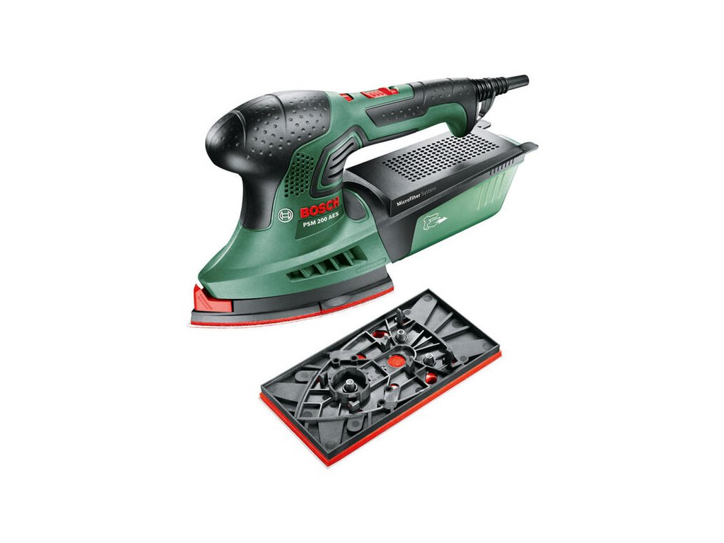 Multibrúska PSM 200 AES; Výkonná viacúčelová brúska s brúsnou doskou a reguláciou otáčok.; Obsahuje trojuholníkové a pravouhlé brúsne dosky na zvládnutie množstva projektov.; Rýchla a ľahká výmena brúsneho príslušenstva vďaka systému SDS.; Elektronická predvoľba otáčok umožňuje nastavenie perfektných otáčok pre danú prácu a materiál.; Ideálna na brúsenie stredne veľkých a väčších rovných plôch, rohov a okrajov.; Na prácu na drevených, lakovaných a natieraných povrchoch a kove; Pravouhlá brúsna doska (2.609.256.D19); 1 brúsny papier (tvar žehličky) K 80; 1 brúsny papier (pravouhlý) K 80; Kufor z plastu