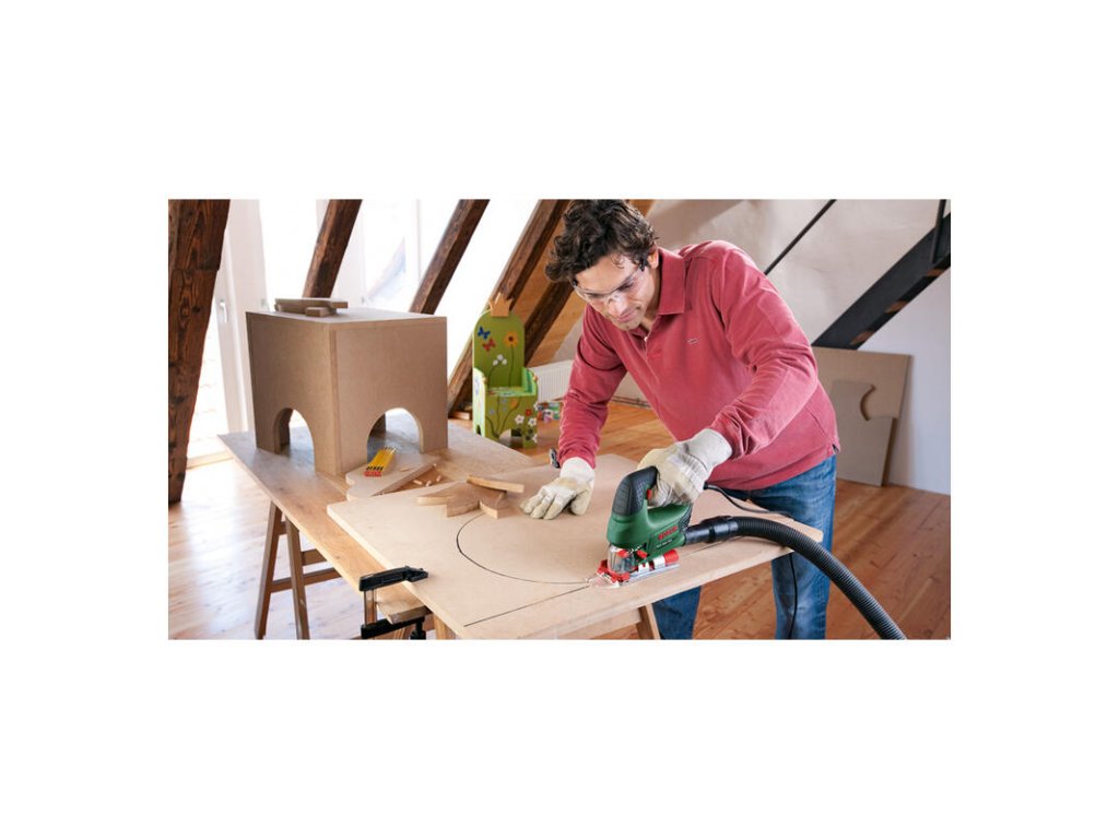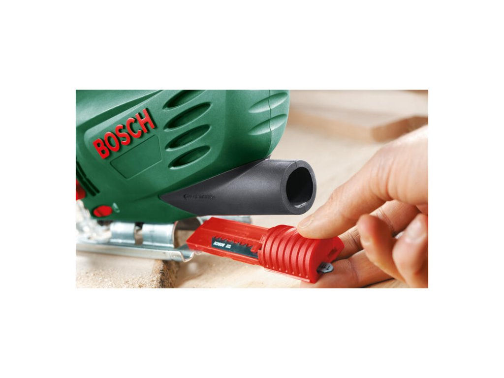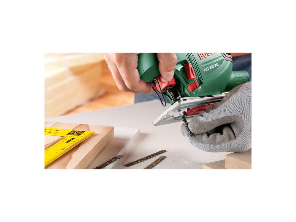 Priamočiara píla PST 800 PEL; Vykazuje rýchle napredovanie využitím rýchleho kyvného pohybu; Kyvný pohyb umožňuje rýchle dosiahnutie výsledkov; Minimálne vibrácie, nízka hmotnosť a kompaktná veľkosť na mimoriadne jednoduché ovládanie; Vykonáva priame a zakrivené rezy do 80 mm v mnohých materiáloch; Funkcia CutControl a chránič proti vytrhávaniu na presné a čisté rezanie; Uloženie až 6 listov v náradí a systém SDS na ľahkú výmenu pílových listov; 1 pílový list T 144 D (2.608.630.040)**; ** možnosť dokúpenia iba ako súprava po 5 ks; Chránič proti vytŕhaniu materiálu (2.607.010.079)**; CutControl (2.609.256.981); Zásobník na pílové listy (2.608.040.231); Priehľadný ochranný kryt (2.609.004.220); Kufor z plastu