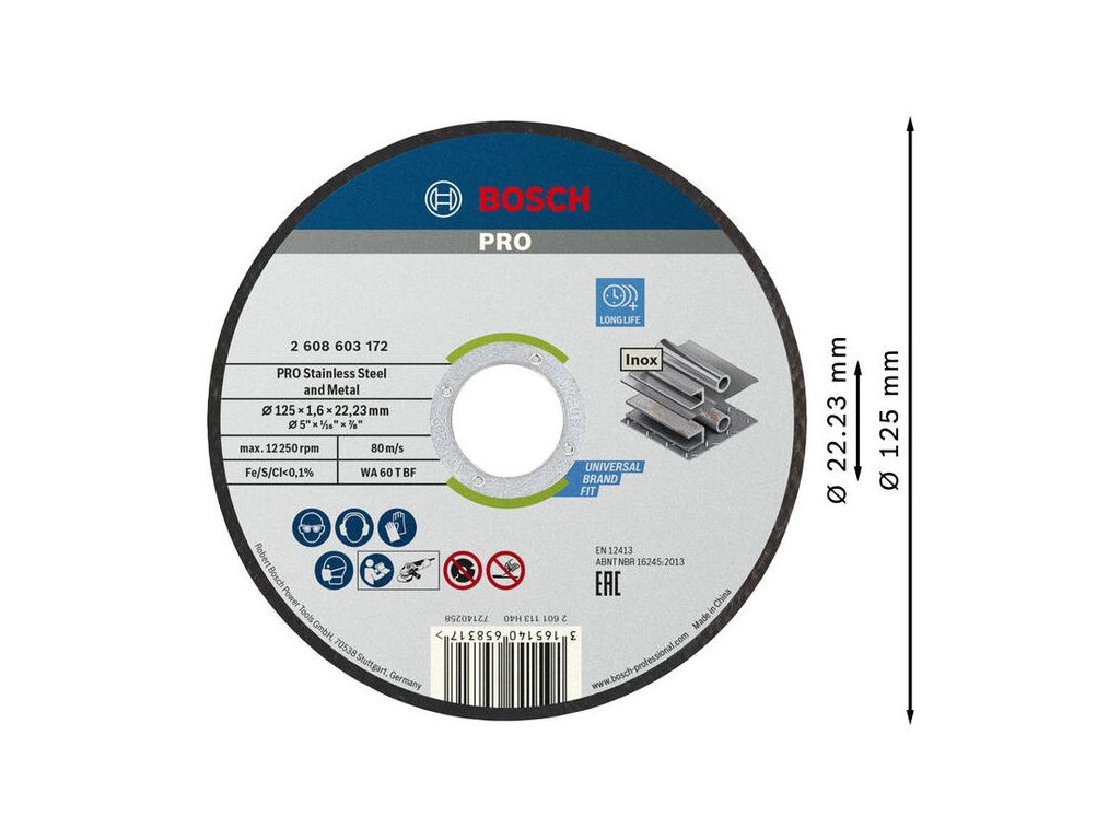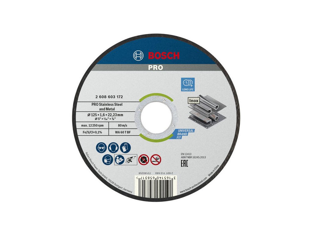 Bosch Rezací kotúč PRO Stainless Steel and Metal, 125 x 1,6 x 22,23 mm 2608619050