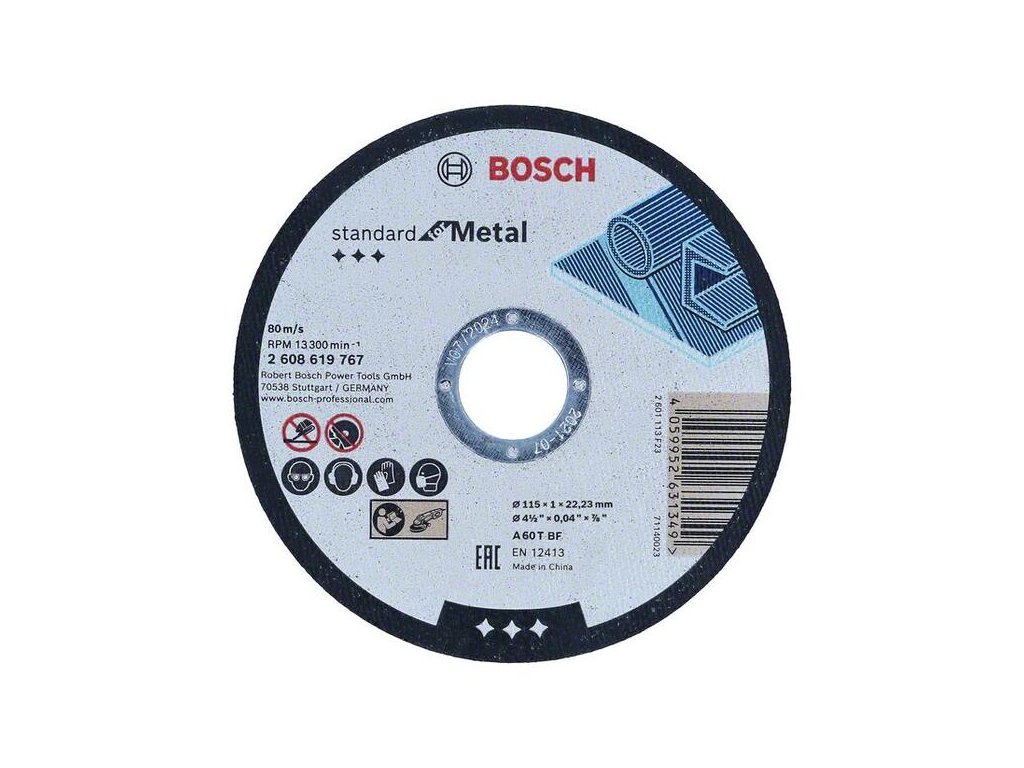 Rezací kotúč Standard for Metal spoľahlivo reže kovy. Kotúč vyrobený z oxidu hlinitého je určený na prácu s kovmi. Tento kotúč používajte na rezanie kovov. Rezacie kotúče Bosch spĺňajú maximálne požiadavky na bezpečnosť, napríklad normu EN 12413.