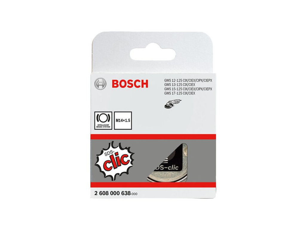 Matica na rýchle upínanie SDS clic M14 je matica na rýchle a ľahké upínanie a uvoľňovanie širokej škály príslušenstva pre uhlovú brúsku, ako sú brúsne hlavy, diamantové rezacie kotúče a brúsne kotúče. Je vhodná na použitie so všetkými uhlovými brúskami, ktoré majú závit M14 a sú vyrobené v auguste 1990 (08/90) alebo neskôr. Kotúč musí byť vystredený na podpornú prírubu a nie na maticu. Hodí sa pre: GWS 12-125 CIEPX; GWS 12-125 CIEX; GWS 12-125 CIPX; GWS 12-125 CIX; GWS 15-125 CIEPX; GWS 15-125 CIEX; GWS 15-125 CIPX; GWS 15-125 CIX Professional.