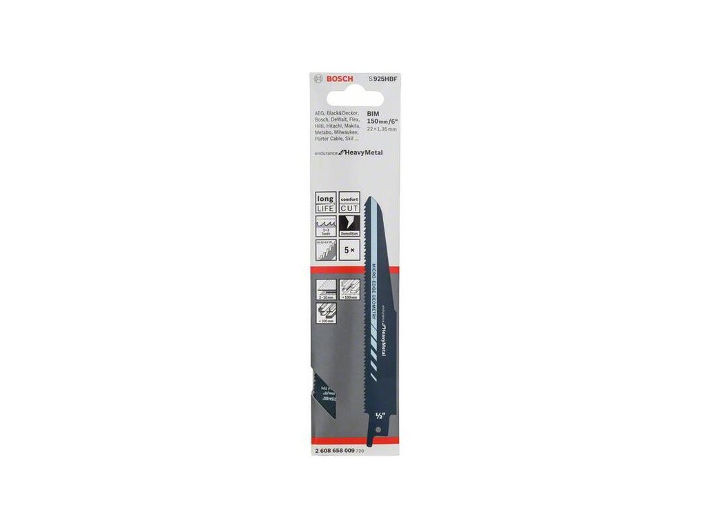 Bosch S 925 HBF Pílový list pre chvostové píly do kovu 150 mm, 5 ks 2608658009