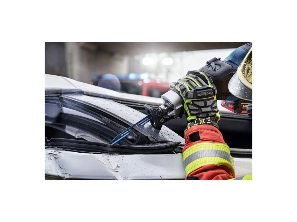 - Jeho štandardná dĺžka (150 mm) sa dokáže zarezať až do hĺbky 100 mm, vďaka čomu je list ideálny na rezanie predného skla, strechy a zadných dverí.