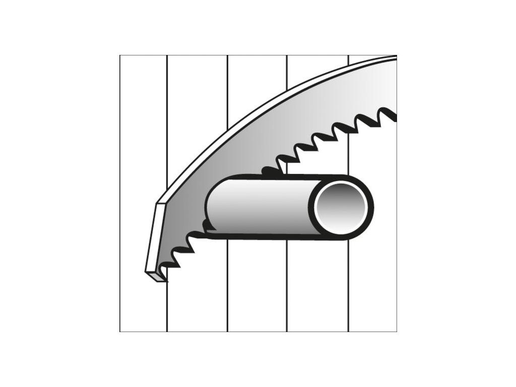 - Kombinuje zuby z kalenej ocele HSS a vysokoflexibilné telo z ocele HCS.