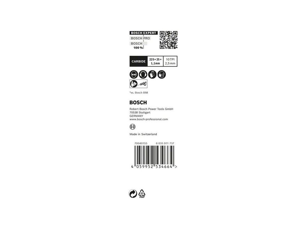- Ponúka až 50× dlhšiu životnosť v tvrdých materiáloch než pílový list Bosch S1122BF.