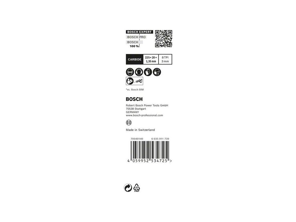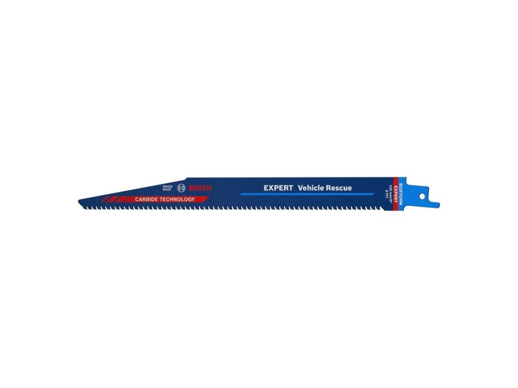 - Pílový list Bosch EXPERT Vehicle Rescue pre chvostové píly je vyrobený pomocou Bosch Carbide Technology, takže reže moderné vozidlá rýchlo a spoľahlivo – a pomáha vám zachraňovať životy.