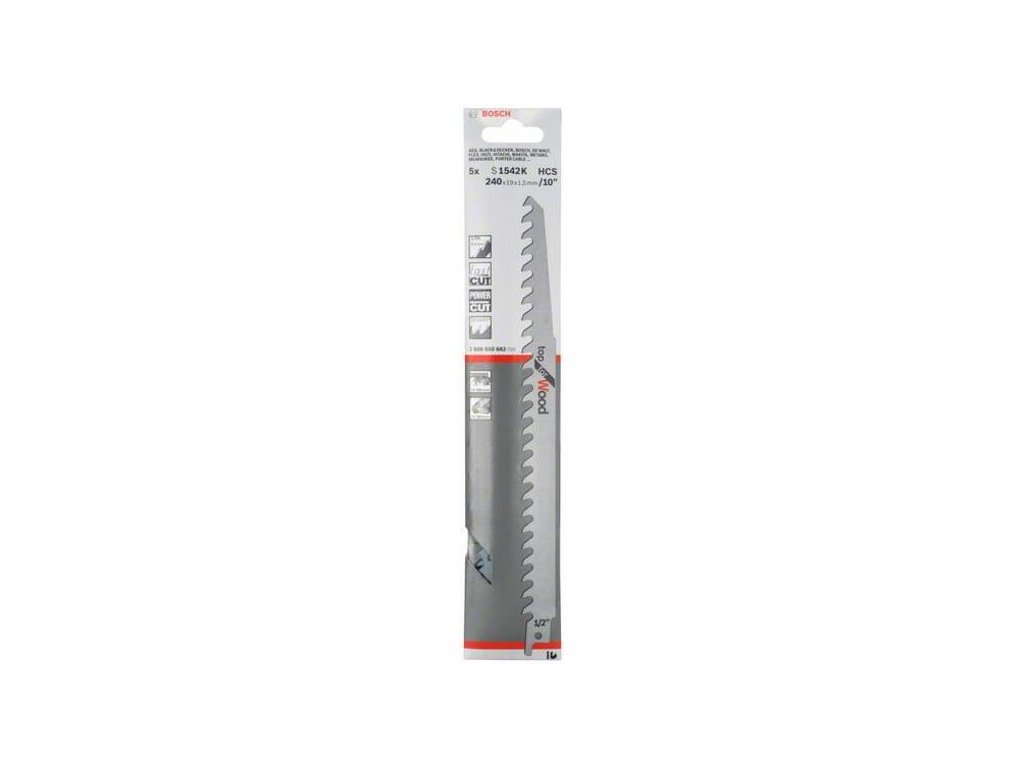 Bosch S 1542 K Pílový list pre chvostové píly na drevo 240 mm, 5 ks 2608650682