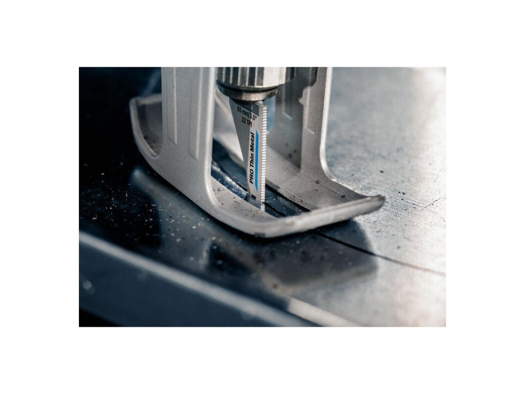 - Pokročilá bimetalová konštrukcia listu PRO Thin Metal S325GF so zubami z tvrdenej ocele HSS zaisťuje dlhú životnosť aj pri práci s oceľovými plechmi.