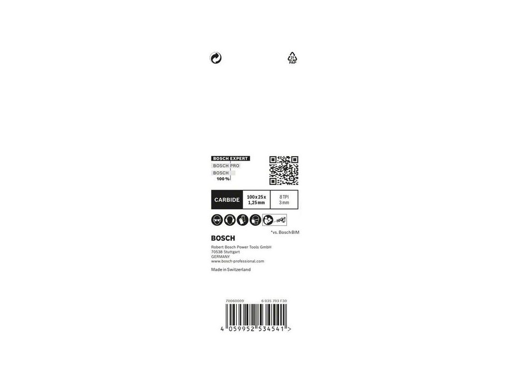 - S pílovým listom Bosch EXPERT Thick Tough Metal do chvostovej píly sa možno rezanie hrubej ocele a liatiny zmení na vašu obľúbenú činnosť.