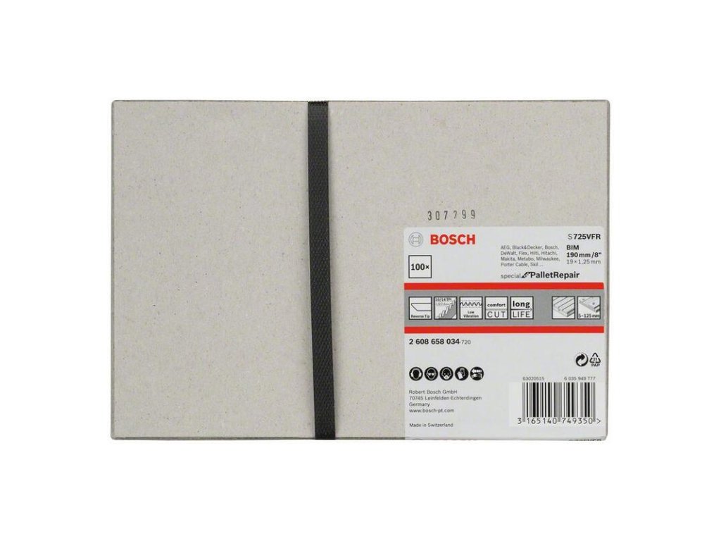 Bosch S 725 VFR Pílový list pre chvostové píly na opravu paliet 190 mm, 100 ks