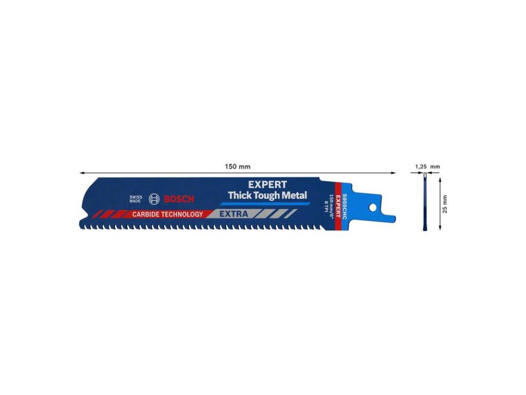 - S pílovým listom Bosch EXPERT Thick Tough Metal do chvostovej píly sa možno rezanie hrubej ocele a liatiny zmení na vašu obľúbenú činnosť.